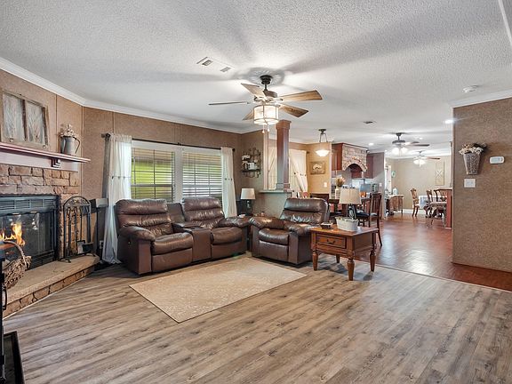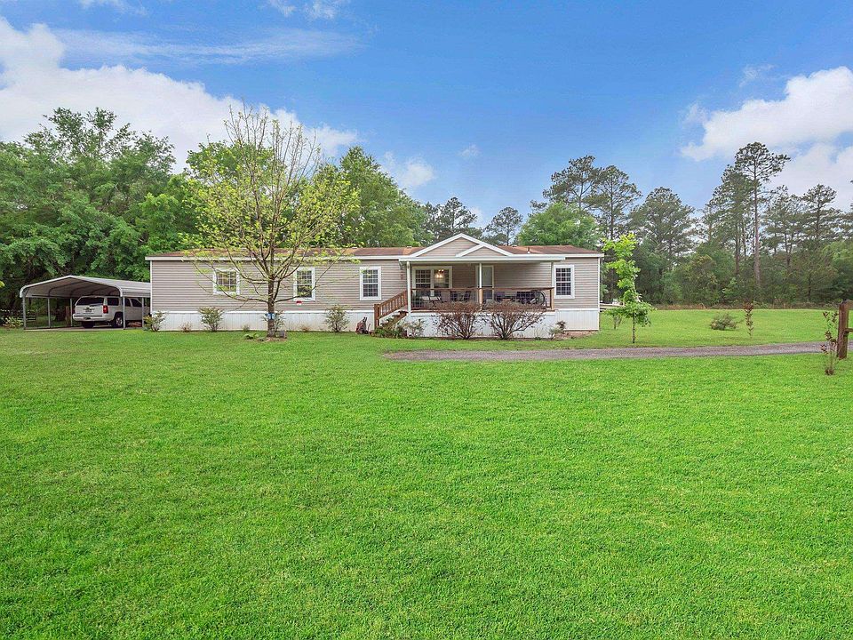 Immaculately maintained home on just over 19 acres. Down the long winding drive, you'll find the homesite is located in the most favorable location on the property allowing for optimal privacy. The home has been improved with a large covered front deck(4 years old), large covered back deck(2 years old), some fresh paint, some new flooring & baseboards. Inside is spacious featuring 2 living rooms, formal dining room, large kitchen, breakfast area, and a split bedroom floor plan for privacy to master bedroom. Master bedroom is size-able and boasts a newly remodeled bathroom and a huge walk-in closet. Family room offers a brick surround wood-burning fireplace. Step outside to find a stand-alone carport, storage shed, koi pond & 24x18 pole-barn with enclosure and all has electric connected. RV pad/hook up on site. 2 year old 5 ton HVAC until with new ductwork. Cross fencing allows for multiple uses for the property whether pasture, gardening or one section as currently used, a food plot. Yard is planted with a banana tree, Japanese persimmon, orange tree, fig tree, pear tree, blueberry bushes, grape vines, blackberries, banana tree and bahia grass. Head to the north eastern corner of the property where there is a roadway across the creek taking you to multiple ponds, a cleared area where there is a food plot, feeder, tripod and ladder stand. This portion of the property backs up to San Pedro Bay Hunting Club. Deer, turkey and wood ducks frequent this property often!