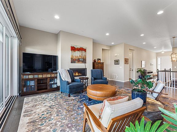 With over $200,000 in upgrades, this beautifully appointed ADA compatible ranch-style home in the community of Anthology West combines elegance, character and function. Step inside this open floor plan to engineered wood floors with timeless style and durability, a contemporary gas fireplace, and a Nano door with a wall of windows that provide beautiful natural light throughout. The gourmet kitchen includes stainless steel appliances with double ovens, 42” cabinets with pull out drawers, an expansive kitchen island with sink, and an eat-in breakfast nook surrounded by windows overlooking the open space. The primary bedroom features a luxury vinyl plank floor and bay window, 4-piece bath with custom walk-in shower, slate floor and spacious closet. A formal dining room, generous great room, home office with French doors, powder room, laundry room, and guest bedroom with full bath complete the main level. Descend into the fully finished walk-out basement that checks all the entertainers boxes including a massive recreation area, spacious bedroom, large flex space/4th bedroom, full bath and extensive storage area. The outdoor living area with fully fenced-in backyard is accentuated with an oversized covered back deck overlooking the neighborhood walking trail and sweeping open space, and contains a professionally landscaped backyard with numerous flowers and fruit trees, turf grass, hardscaping, and an additional seating area under the deck. Additionally this home has an oversized two-car garage, fully paid solar panels on the new high impact shingle roof, remote control blinds, plantation shutters, updated lighting throughout, fresh new exterior paint and a new insulated garage door. Enjoy a community that offers a park, clubhouse, pool, and state-of-the-art playground! All minutes from the neighborhood elementary school and Cherry Creek Trail. Explore the virtual tour!