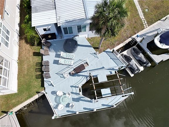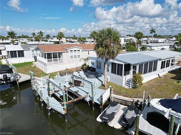 Does size really matter? Not necessarily to the savvy real estate investor. This fully furnished home measuring under 1000 square feet is packed with lovely amenities. It boasts two bedrooms and two bathrooms, a large Florida room and living room and a kitchen island large enough to seat five adults. The home has large windows facing the water providing endless views of aquatic wildlife. The location of this home sits on the salt-water side of Bayside Estates giving you unlimited and unrestricted boating access to Hurricane Bay, Pelican Bay and the Gulf of America. If entertaining is your thing, then you will appreciate the large dock overlooking the canal. Many good times can be had hanging out with friends and family on the dock. Bayside Estates has experienced a re-birth of sorts since that fateful day in September of 2022. There are new manufactured homes being delivered almost weekly and others have been repaired and rebuilt better than new---this is one of those homes. Whether you are purchasing as a full-time residence or a winter retreat from the frigid cold of the Norther states, this home would more than satisfy all your needs. Bayside Estates is the best kept secret of Fort Myers Beach. This incredibly active and friendly 55+ community is the crown jewel on the gulf coast. Bayside estates is only 2.5 miles to the beach and is accessible by either car or boat. A very popular activity is riding your electric bicycle to the beach for the day and visit the world-famous Jimmy Buffett’s Margaritaville. Just don't step on a pop-top!!. Nearly all of the major retail vendors are within a very short driving distance for ultimate convenience. For those who don’t know a lot about Bayside Estates, it is a very fun place to call home---some would even say it’s a mature person’s playground. Whether you want to play pickleball, tennis or bocce ball or hang out at the community pool or simply cruise the hood in your swanky golf cart, there is always something going on around here. People are friendly and you will be warmly welcomed.