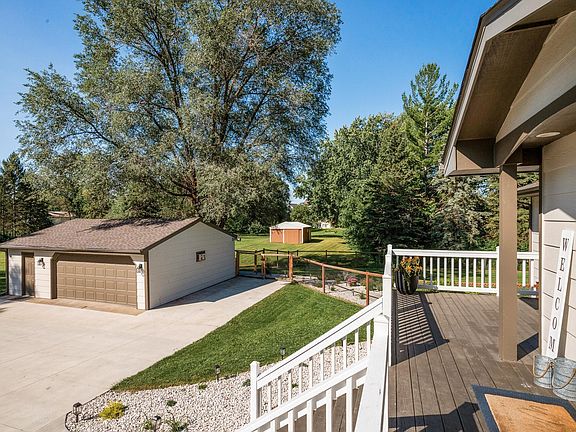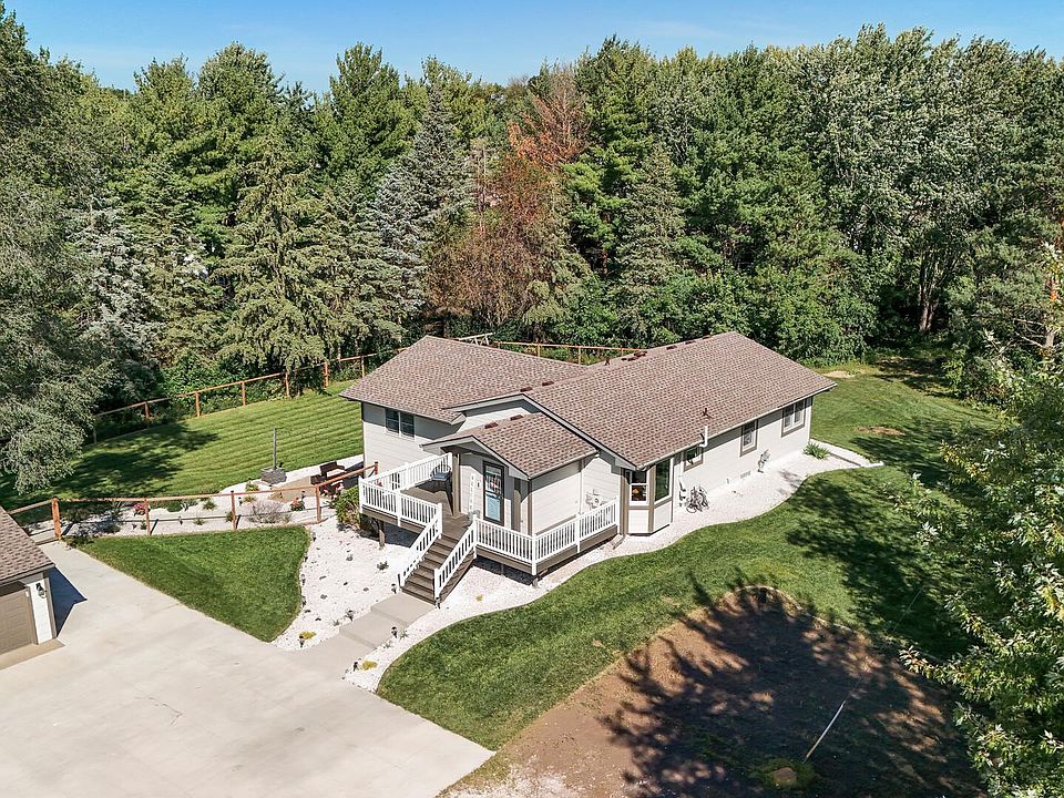 Stunning updated walkout rambler set on over 2 private wooded acres! Mudroom/entry with closet, built-ins, marble countertop & LVP flooring. Open gathering spaces with hand scraped hardwood floors. Renovated kitchen with stained cabinetry, quartz countertops, large island, stainless appliances + custom designed walk-in pantry with countertop, electrical & shelving. Living room has easy access to the vaulted family room with gas stone fireplace, new carpet & a patio door to the deck. There are 4 bedrooms & tile bath with marble countertops completing the main level. Lower level walkout has a spacious amusement room with a floor-to-ceiling stone gas fireplace & freshly painted wainscoting. There are two additional bedrooms, full bath + large mechanical, laundry & storage space. Slider door opens to the paver patio & fenced in back yard. 2+ car garage with heat & A/C + a new garage door. There are a variety of apple trees on the property. Newer water heater. Brand new carpet on stairs, lower level amusement room & hall. House & garage roofs 2024. Fresh paint in & out. Custom chicken coop. Radon mitigation system 2024. Fresh landscape. Prior Lake/Savage Schools. Move-in ready!
