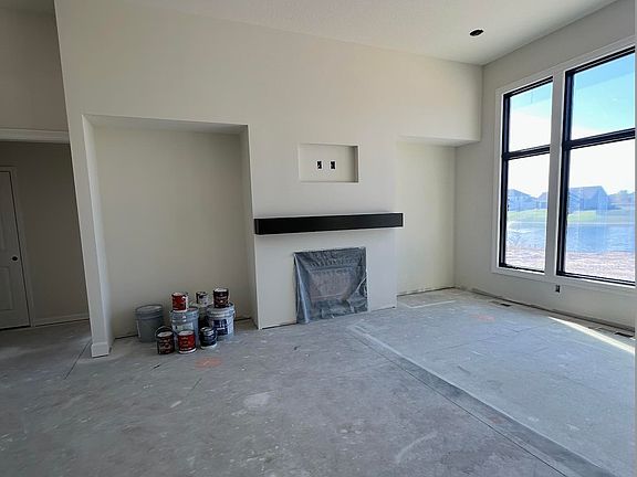 New Construction - Welcome to an exquisite custom-designed ranch by Bob Buescher Homes, set to be completed on December 19, 2025—just in time for the holidays! This meticulously crafted single-story residence boasts 2,237 sq. ft. of beautifully appointed living space, featuring 3 bedrooms, 2.5 baths, an office, and an expansive 3-car garage (816 sq. ft.). The exterior exudes classic charm, highlighted by an oversized front porch, elegant double entry doors, a striking dormer, and a rear covered porch with a soaring cathedral ceiling and extended patio—an idyllic setting for entertaining or unwinding. Step inside to discover an open-concept layout that radiates warmth and sophistication. The great room impresses with an 11’ ceiling height adorned with beams, a stunning fireplace framed by custom built-ins, and expansive windows that frame breathtaking water views and invite natural light inside. The adjoining kitchen and dining area are designed for both style and functionality, featuring custom maple cabinetry in a serene cream finish, an 8x5 hickory island with a rich coffee bean stain, and a spacious walk-in pantry complete with a built-in coffee bar. The kitchen perimeter and island are adorned with beautiful LG Clarino Brushed Quartz tops, making it a true centerpiece of the home. Retreat to the primary suite, a private haven featuring a cathedral ceiling and a spa-inspired bath equipped with a zero-entry custom tiled shower, dual quartz vanity, linen cabinet, and an oversized walk-in closet. A transom window above the vanity invites natural light, enhancing the serene ambiance. Bedrooms two and three, located on the opposite side of the home, are generously sized and share a beautifully appointed full bath. Additional highlights include a conveniently located laundry room adjacent to the primary suite, a stylish half bath with a custom built-in bench and hooks near the garage entry, and a spacious office/den just off the foyer, complete with a glass door for added elegance and privacy. The home is equipped with an irrigation system to maintain a lush landscape and a tankless water heater for energy efficiency. Plus, you'll have access to scenic walking trails nearby, perfect for outdoor enthusiasts. This home masterfully blends quality craftsmanship with contemporary design, offering unparalleled comfort, elegance, and functionality in every detail. Feel free to watch the progress pictures in the MLS as we bring this home to life!