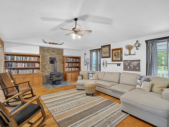 GET AWAY FROM IT ALL! Come take a look at this wooded retreat less than an hour from Des Moines! This ranch home was built in 1995, sits on 2 acres & provides over 2800 total living sq ft (main + lower)! The main floor features open flow from front living room -- to the kitchen -- to the dining area/back living area! Thick rustic pillars ground the space! The country chic kitchen has tile floors, quartz counters, open shelving, pantry closet & a sizable island with breakfast bar seating! The primary bedroom has two walk-in closets and a refreshed private full bath with dual sink vanity, shower & jet tub! The main level also features 2 more bedrooms, a full hall bath & main floor hallway laundry closet! The lower level offers a family room, a non-conforming 4th bedroom with walk-in closet & a 3/4 bath. There's a storage room & a separate utility room, too! 2-car tuck under attached garage! Outside, you're surrounded by timber in all directions! The lot provides a few flatter areas that allow for flexible usage: small hobby farm, future garage/shop space, gardens, play area, etc! NO COVENANTS! A chicken coop & open faced shed are included! Located just NW of Chariton & close to Osceola, Indianola, Knoxville, & Des Moines area! All information obtained from Seller & public records.