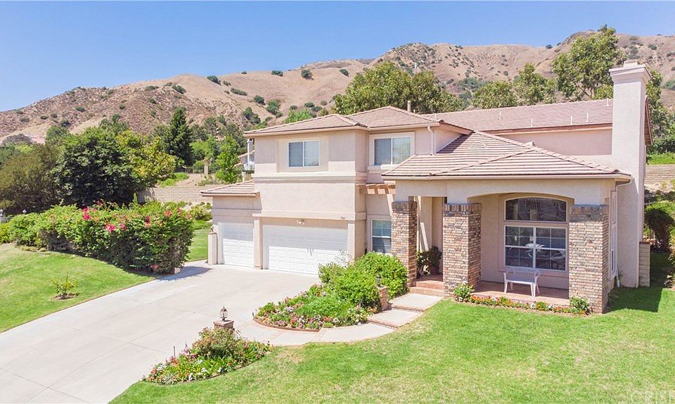 This beautiful home is nestled amidst rolling hills on a gigantic 19,572 square foot lot at the end of a quiet street with no through traffic in one of Granada Hills most sought after neighborhoods offers, lush landscaping, custom fencing, 3,796 square foot open concept floor plan with high ceilings throughout, living room is bathed in natural light from a multitude of windows, beautifully mantled fireplace, the family's cook is going to truly appreciate the kitchen's recessed lighting, abundant cabinets, ample Corian counters, double oven, built-in appliances, center island with built-in breakfast bar, sit down dining area, adjoining formal dining room, huge family room with its fireplace, 4 bedrooms with walk-in closets and direct access to full bathrooms; Large master suite has double door entry, "His & Her" mirrored walk-in closets, dual sink vanity with cosmetic station, and a beautifully appointed bathroom with spa tub, glass enclosed shower, 4 full bathrooms; 1 is located on first floor, first floor study, large second story loft it's perfect for your media equipment, functionally located laundry room with handy utility sink, energy efficient dual pane windows, dual zone central air & heat, open patio with its 3 car direct access garage, oversized concrete driveway, and dedicated street parking spaces.