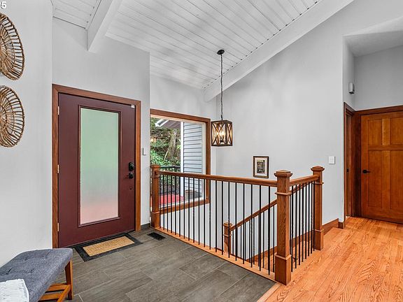 Palisades Private Retreat! Perched perfectly on a private lot, this stunning NW contemporary has been remodeled throughout! The main level boasts over 1700 square feet with stunning vaulted, open beam ceilings, expansive, updated windows and gorgeous hardwoods underfoot. The kitchen has been remodeled to include quartz counters, custom cherry cabinetry and stainless steel appliances, while the expansive living room has multiple sliders in addition to a floor to ceiling fireplace clad in stone. A remodeled powder room sits just off the gorgeous foyer, while the primary suite anchors the west end of the floor plan. The primary suite boasts a spa-like bathroom with steam showers, heated floors and updated surface treatments in addition to it's own elevated deck. Multiple decks comprise over 1500 square feet of outdoor living space which can be accessed from multiple levels throughout the home. The lower level comprises over 1000 square feet and has a gorgeous family room bookended by two additional bedrooms, each with their own bathroom! Built-ins, gorgeous colors, updated baths and a separate laundry room create the perfect combination of luxury and utility. Beyond the 2700+ square feet of finished space are multiple storage rooms, a detached two car garage and stunning grounds across two parcels that comprise almost a 1/2 acre! With easy access to Bridgeport Village, downtown Lake Oswego and the Palisades Lake Easement, this home is without comparison at this value!
