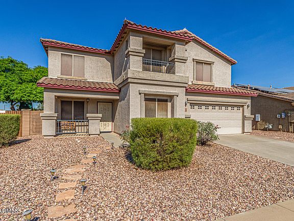 Beautiful 5-bed, 3.5-bath home in Sarah Ann Ranch! Spacious floor plan with office, loft & media room. Upgraded kitchen features quartz counters, stainless appliances & large island. Wood-look tile & carpet throughout. Enjoy a private backyard oasis with pool, turf & side RV gate. Corner lot offers mountain views! 3-car tandem garage & paid-off solar keep energy costs low. Fantastic Surprise location near parks, schools & shopping. Move-in ready with all the upgrades!
