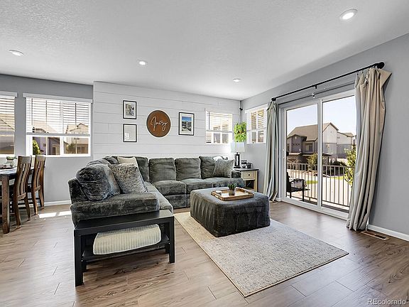 Outdoor living is seamlessly integrated with a covered porch and balcony, ideal for entertaining or enjoying quiet moments. The First Creek Village community offers a suburban lifestyle with sidewalks, parks, and easy access to local amenities. Located close to I-70, 225, and Pena for quick access to DIA, Denver and Buckley Air Force Base.