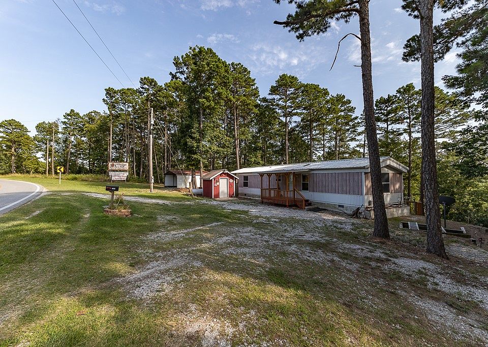Enjoy Beaver lake area living off HWY 12 on these two charming parcels with mature pines and a quick shot to Eureka Springs, War Eagle Mill, boat rentals, Hobbs State Park, marinas, and more. Just a few minutes drive into Rogers, this spot is conveniently located for full time living or vacation rental. Included is a detached carport, shed, and income producing sign for war eagle mill at $1200 annually. This home has a fully chain link fenced yard for pets and a covered back deck perfect for enjoying the outdoors. Home has been permanently affixed and is on cinder blocks, on concrete. Metal roof has 3 inches of insulation under it and over original roof. Utilities are low! Septic system has been treated regularly. Small circle driveway is easy to miss. Home is located on the right past Beaver Safari outfitters. No covenants. Zoning may be converted with commercial intent.