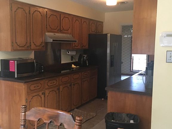 - Features: Blinds, Ceiling Fan(s), Fireplace-Wood, Security System, Pull Down Stairs