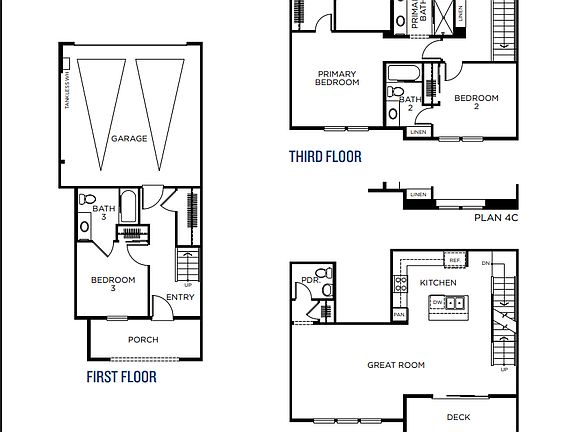 Inside, you'll find a bright and open living area, luxury vinyl flooring throughout, a fully equipped kitchen with quartz countertops, and stainless steel appliances including a refrigerator. A half bath is conveniently located on the second floor, while each of the three bedrooms includes a private en-suite bath, making this home ideal for families or professionals seeking both space and privacy. The home also includes in-unit washer and dryer, a furnished living room with a sectional couch and dining table, and a rear-entry 2-car garage. With energy-efficient features and a modern layout, this townhome offers the ideal balance of comfort and convenience.