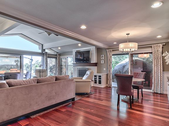 Single Story, 5BR/3+BA, Vaulted Ceilings, Wood floors. Interior Doors Solid Wood, Custom Tinted Windows, Loads Of Upgrades. Great location, Cul-De-Sac, Views, Fenced, Pavers Throughout Driveway & Rear Parking, Large Covered Parking In Rear. 1BR/1BA, 325 SqFt Custom Built Casita In Rear Of Property Heated/Air Conditioned. Fruit trees. Professional Size Tennis Court With Lighting, Black Bottom Pool & Spa. Close to RB downtown and North County Westfield Mall. Poway Acclaimed School District. Amazing Master bathroom with 2 person jacuzzi tub, double sinks with vanity, large walk in Shower, Two Separate walk in closets (his and hers). Ceiling fans throughout. Low maintenance landscaping. Artificial grass in front and putting green in rear. Solar Panels, Electric Vehicle Plug-In Garage, LED bulbs throughout. Home is Energy efficient, Tankless Water Heater. BMX track around Tennis Court, Custom 100ft Water Slide into second pool, Approximately $100k to build. Two Air Conditioners for home. Upgraded Appliances. Crown Molding Throughout. Pool Area Half Bath. No Mello-Roos Property Taxes.