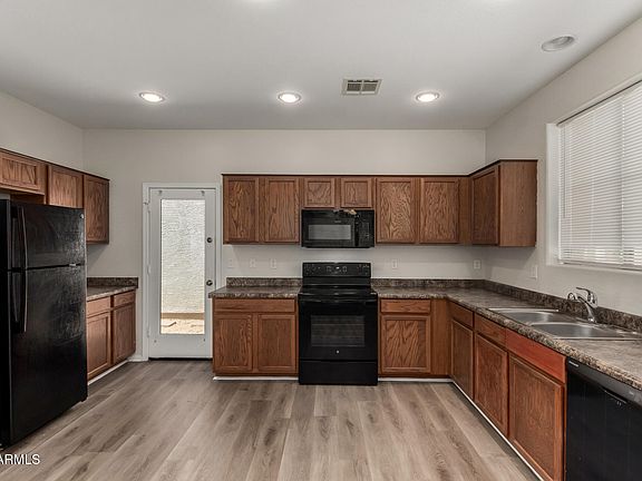 Great opportunity to own this 2-story home on a corner lot in Village at Canyon Ridge West! The interior boasts a neutral palette and a taste of wood-look & tile flooring in all the right places. Enjoy a welcoming living/dining room, ideal for entertaining. Cook delicious meals in the eat-in kitchen, which showcases white cabinetry, ample counter space, a walk-in pantry, and built-in appliances. The primary bedroom hosts a private bathroom with dual sinks, a separate shower/tub, & a walk-in closet. Continue to the back and you'll find a low-maintenance side yard with gravel, stepping stones, and a secure gate—ideal for storage or utility use. Make the most of the fantastic community amenities available to you! Don't miss this out!