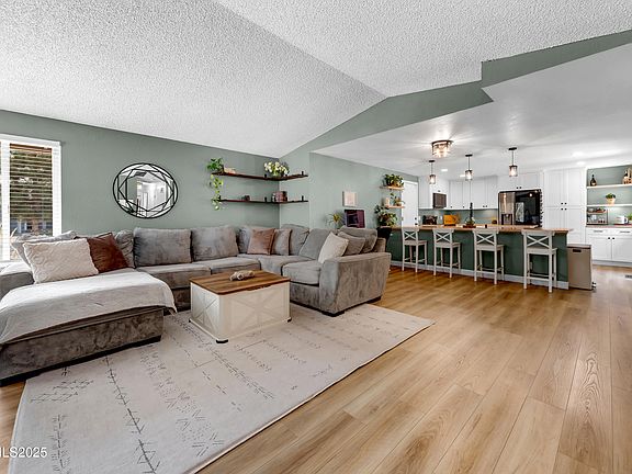 Welcome to this beautifully remodeled single-story gem in East Sparks! This 2-bedroom, 2-bath home offers 1,155 sq ft of thoughtfully upgraded living space. The vaulted ceilings and large windows flood the living room with natural light, highlighting the cozy gas log fireplace. The kitchen shines with custom cabinetry, wainscot paneling, modern appliances, and fresh paint—perfectly complemented by a slider that opens to a stamped concrete patio ideal for entertaining.