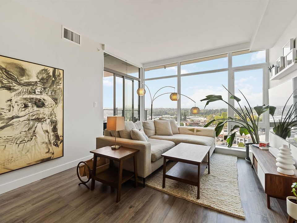 Floor-to-ceiling windowsIncredible kitchenQuartz countersFull size ss appliancesGas cooktopPrivate balconyWalk-in-closet with custom built-ins