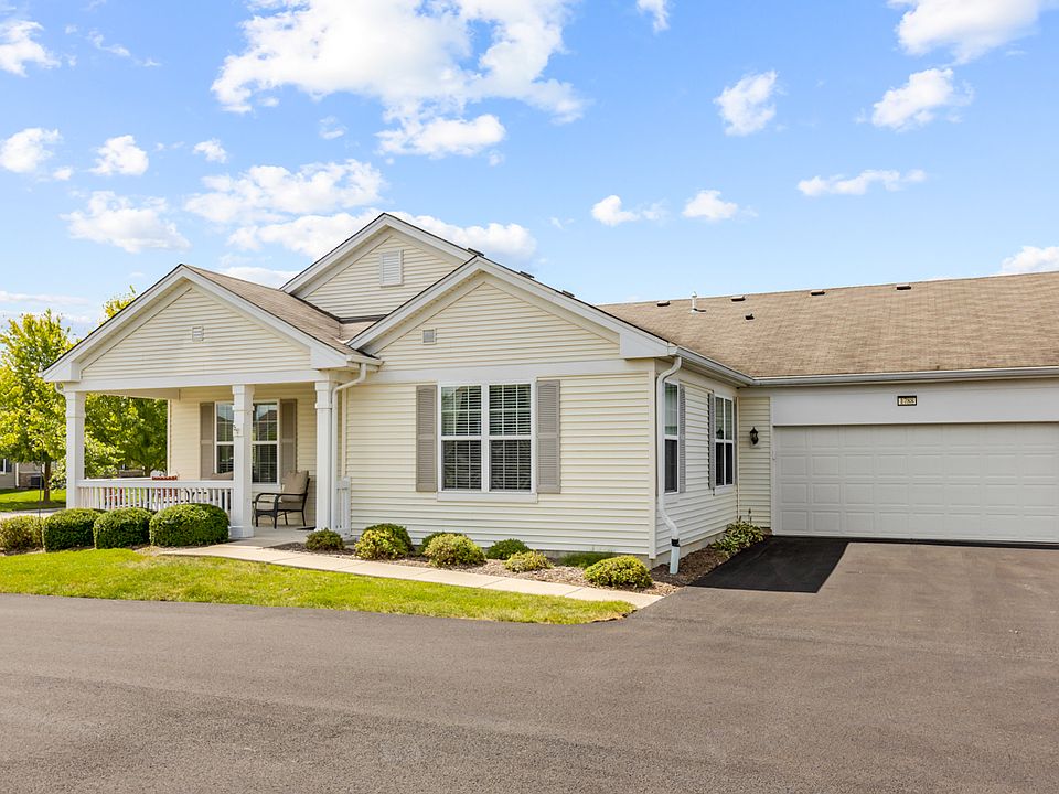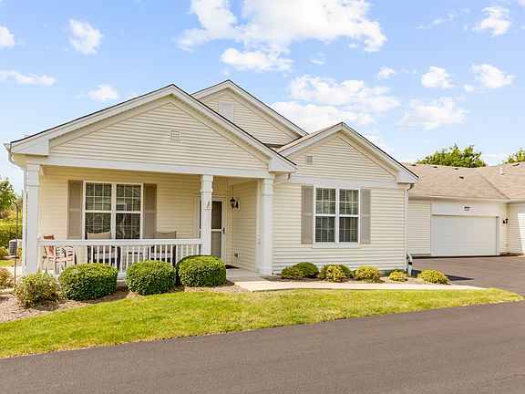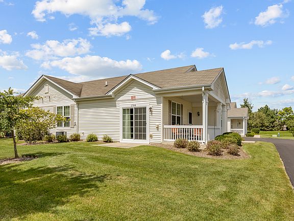 One owner smoke free/pet free home available for the first time since built. Step inside to this well maintained ranch style home with one of the few in the community with a porch! Upgraded kitchen with under cabinet lighting and all stainless steel appliances. 2 bedroom, 2 bath, den and hardwood flooring. Large 2 car garage has nice storage built in that doesn't inhibit space for 2 cars. This coveted location is premium and a short walk to the clubhouse, pool and golf course. Community includes Bike Room, Bike Trails, Exercise Room, Golf Course, Party Room, Pool-Indoors, Pool-Outdoors, Pickleball/Tennis Courts, Bocce ball, Whirlpool, Business Center, Gated Entry, Sidewalks and several ponds and walking paths. Gather with some old friends and make new ones as you enjoy all the Carillon and Pingree Grove/Huntley/Hampshire areas have to offer. Close to grocery stores (Jewel, Walmart, Aldi) and several great restaurants (Brunch Cafe, Jamesons, Panera) just a few minutes away. Great price in this established area of the community. No 'new construction' traffic, trucks and the sounds of pounding hammers to deal with here. Just peace and happiness in your new found home.
