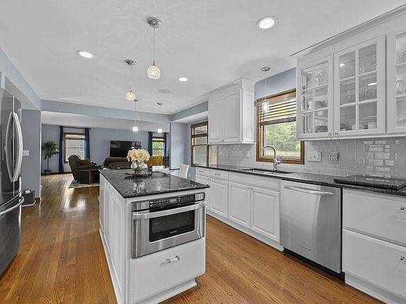 Stunning curb appeal welcomes you into this spacious 4 bed, 2.5 bath home. The updated kitchen w/ custom white cabinetry, granite counters, stainless steel appliances and center island serve as the focal point of the home and opens up to an eating space and large family room w/ fireplace overlooking the patio and backyard. The entry level also boasts laundry, dining room, half bath and office. Upstairs you will find the primary bedroom w/ vaulted ceilings and walk-in closet and attached full bath featuring double vanity, soaking tub and shower. 3 additional bedrooms (one currently set up as walk-in closet) and 2nd full Jack-and-Jill bath w/ access off the hallway and bedroom (offering additional vanity and sink) are also on the second story. The unfinished LL could easily be finished and offers great storage space. A 2 car attached garage and home generator are added bonuses. Gorgeous setting backing up to private drive so no neighbors directly behind you!