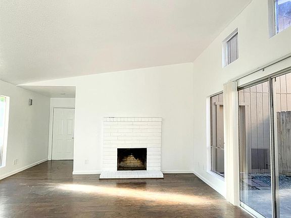 * Open floor plan with vaulted ceilings and cozy fireplace in the living room with plenty of sunlight.