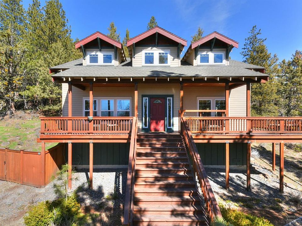 Distinctive Architecture. Great location in Bend's West Hills & close to downtown. Flexible floor plan with main level master suite & two large bedrooms upstairs plus two bonus spaces. Large open kitchen with walk-in pantry, gathering room with fireplace and generous dining room space. Quality finishes including hardwood & slate flooring, arched doorways and high ceilings with coffered design details. Big front porch for soaking up the sun & Mt. Bachelor view.Birders paradise.Great dog park down the street.