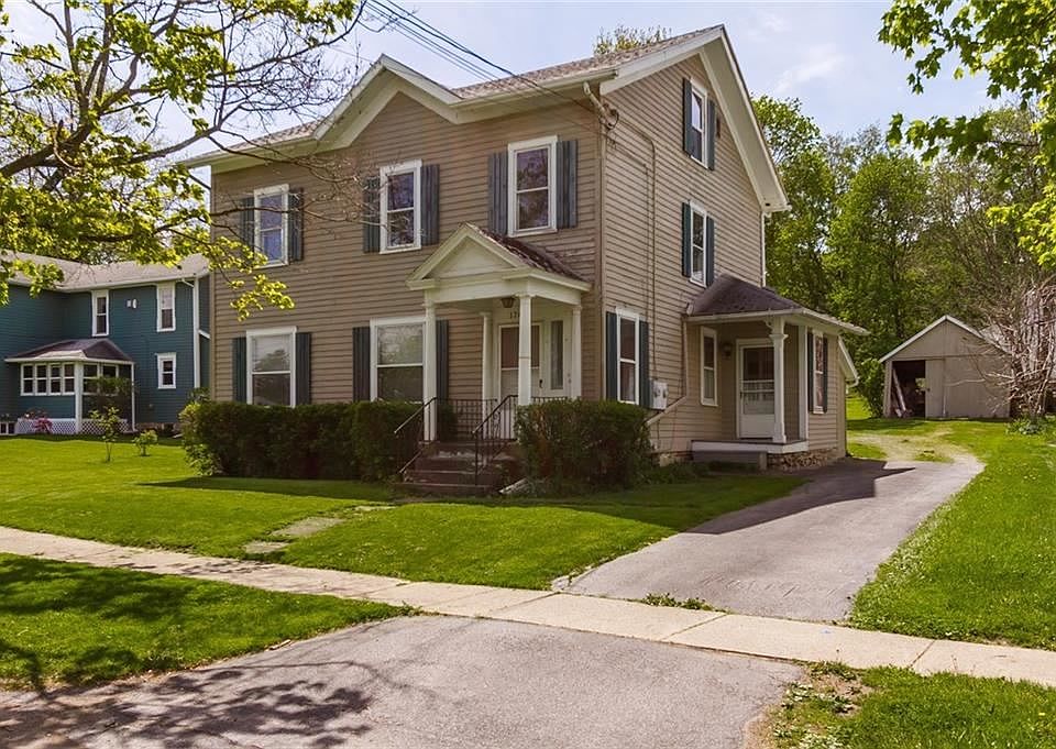 Well-kept Lima Village income opportunity! This two-unit home has historic charm and modern updates. Live in one half and pay your mortgage with the other! Plenty of outdoor living space to enjoy the spring and summer, from the side porch to the patio and peaceful shaded backyard. Sidewalks lead to the heart of Lima with shops and dining...less than a quarter mile to HFL Primary School. The upper unit has been beautifully renovated, with new flooring in the eat-in kitchen, new carpeting in the bedrooms, and more. The first floor retains a historic feel, with a formal dining room and wide moldings. First floor laundry hookup! Clean walk-up basement and full attic with stair access for additional potential living space! The garage/carriage house is great for storage or a workshop. Check out the Zoom virtual open houses or schedule in accordance with NYS guidelines!