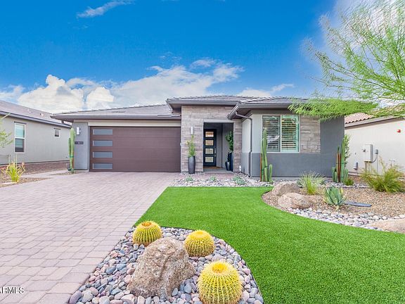 Wow! Live the life of LUXURY in BEAUTIFUL Trilogy at Verde River. This home's interior finishes are completely custom and will leave you in awe!! Gorgeous curb appeal, beautiful stone accents, & refined landscape is just the beginning. Captivating interior showcases a bright & airy open floor offering tile and wood flooring, soothing palette, dazzling light fixtures, & multi-sliders leading to the back patio, merging the indoor w/the outdoor living. The stunning gourmet kitchen is a cook's delight w/trending cabinets, stylish mosaic backsplash, SS appliances, quartz counters, wall oven, wine fridge, a pantry, & an island w/a breakfast bar. Main retreat features a spotless ensuite w/dual sinks, & a walk-in closet. The den has a queen murphy bed and could be a 3rd bedroom. Guest bedroom has been expanded to accommodate a king size bed comfortably. Oversized expanded garage has plenty of room for your golf cart. Experience delightful mountain views from the amazing backyard w/covered patio, custom waterfall, & built-in BBQ! This gem won't disappoint! Trilogy at Verde River is a Resort Style community featuring something for everyone! Golf, tennis, pickle ball, bocce ball, heated lap pool and swimming pool, hot tub, fitness center, demonstration kitchen and a 7.5 acre dog park. The community center has casual and fine dining, luxury spa and events center. Trilogy at Verde River is adjacent to the Tonto National Forest and is situated in the middle of miles and miles of hiking and biking trails. Live like you're on vacation!