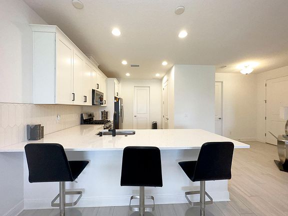 Modern sofaAttached single story villaConfigured as an officeLarge gas grillTwin wash basinsLight and modern kitchenScreened patio area