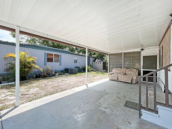 Are you looking for an age-qualified community with a home priced to sell? This quaint 2 Bed / 1 Bath bungalow offers tons of natural light and great use of space. Complete 2015 remodel this spacious kitchen comes complete with oven/range, dishwasher, fridge, and microwave. Slate wood floors run throughout from the entry until the bedrooms, that give home a nice sleek modern look to it. Other perks and features include a kitchen Island, smoke alarms, ceiling fans and built-in cabinets. Lots of windows are another stunning feature that is protected by hurricane shutters. Other appliances include washer and dryer set. The exterior boasts a cute patio area with lots of trees as well as an Enclosed porch that adds to living space. There is plenty of shade surrounding this home as well as a screened-in covered porch and a shed for extra storage. With plenty of parking space, including a carport, this home has lots to offer. Don't miss out on this affordable opportunity and come see it for yourself!