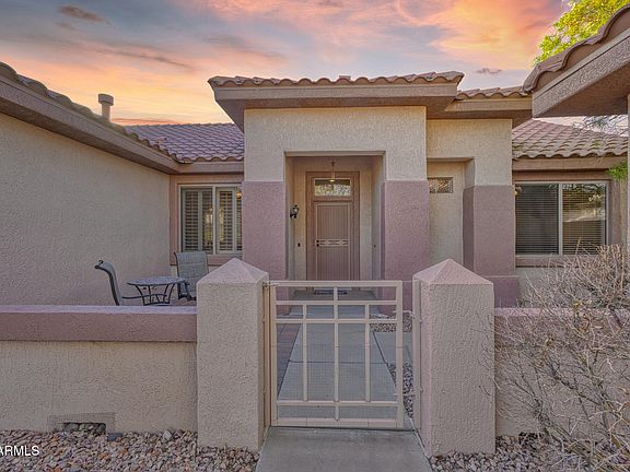 New Roof! and $35,000PRICE DECREASE! Lowest priced home with a Casita! Three Bedroom, Three Bath Home! CASITA has a Full Bath, Murphy Bed, Built in Storage. Quiet cul-de-sac lot. Bright & Light! Terrific layout with an open living room/dining room and spacious eat-in kitchen with plenty of storage, prep space and stainless appliances. Plantation Shutters T/O. Generous master retreat has a bay window, walk-in closet, and adjoining bath with 2 sinks and shower. Inside laundry with cabinetry and washer/dryer included. Yard boasts beautiful desert landscaping and covered patio with extension, hot tub/spa, artificial turf accent. 2 car garage has overhead storage and cabinets plus door to the side yard. FURNITURE INCLUDED WITH NO MONETARY VALUE! Serene and peaceful home and location. Other features include; Private courtyard with pavers and gate, Fenced back yard, Newer HVAC and Hot Water Heater. Soft water loop, ceiling fans, neutral interior paint scheme. Incredible community amenities include: tennis, golf, fitness center, activity classes, pickleball, pool/spa, entertainment, restaurants and Much More!