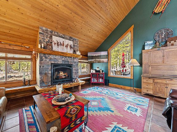 Welcome to this stunning Northwest lodge-style home, the perfect retreat for every season! Whether you're cozying up by the new gas fireplace or relaxing on the oversized back deck, this home offers comfort and tranquility. Enjoy watching deer meander through the expansive common area or unwind in the 6-person hot tub. Great proximity to Fort Rock Park with convenient access to bike trails for outdoor adventures. This home is tastefully furnished by a professional decorator to complement the Sunriver aesthetic. Custom tile showers and counters, new French Oak wood floors and log accents, including the mantel and stairway railings, add abundant charm. Owners are currently using the loft as a 3rd bedroom, complete with door and closet. Recent updates include a new TREX deck, windows (2021), roof and skylight (2023), and pine interior doors and trim (2024). Additional upgrades include new kitchen appliances, furnace (2021), and A/C (2023). This home is truly a gem.