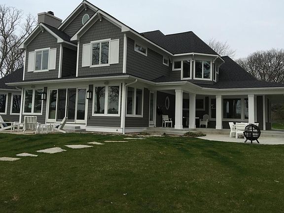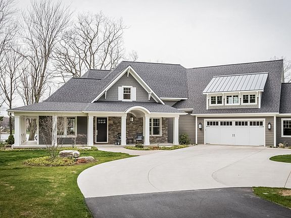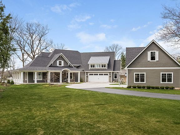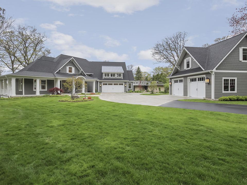 Coastally inspired lakefront home with 132 ft on Spring Lake! This custom built home by DeHaan Homes is less than 2 years old and includes 5 bedrooms and 4 full / 2 half baths with stunning craftsmanship throughout. You will be captivated by the private drive and almost 2.5 acres of quality waterfront living. With over 5100 sq ft of finished living space this open concept craftsman style home will inspire and impress for every lifestyle. Main level featuring a family and living room with cozy w ood fireplace, wet bar , large pantry & dining area with gorgeous lake views. Gourmet open kitchen with expansive island for optimum seating with custom cabinetry, quartz & marble counter tops, light/beachy hardwood floors all leading to your massive wrap around outdoor porch and concrete patio