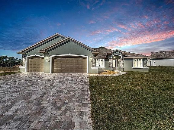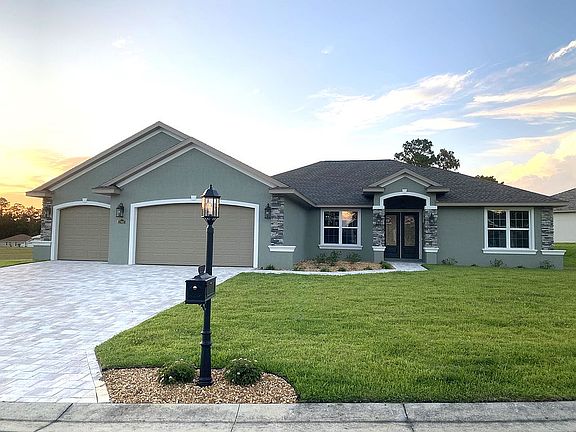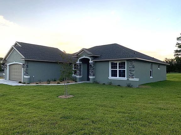 Reduced and Priced to Sell New Construction Custom Beauty! Owner Financed at 3.9% for the first 3 years! Come experience the top-rated Juliette Falls golf course in a beautiful gated community! This is a Great Entertainer with an open split bedroom floorplan, 4 bedrooms and 3 full baths. The spacious kitchen is amazing with an elevated island, pretty granite and backsplash, and surrounded with cabinetry and enough room for at 4 or more bar stools. The kitchen has a corner pantry with wood shelving, and a wet bar with beverage refrigerator. It opens to the Dining Room and Great Room with cathedral ceilings and a linear fireplace/tv wall (bring your creativity to make it the focal point of the room). The Great Room features triple pocket sliding doors leading to a large lanai with a Master Spa therapeutic hot tub. The Master Bath includes his/hers vanities with granite countertops and wood medicine cabinets, double shower heads and niches, toilet and linen closets. Leading to the roomy Master Bedroom, you'll discover barn doored his/hers closets and an elevated coffered ceiling, windows for lots of natural sunlight, and a door leading to the private Master Spa hot tub on the lanai. The guest wing includes 3 additional good-sized bedrooms, each with access to a full bathroom with step-in floor to ceiling tiled showers and rain-heads. The laundry room has a sink, room for a freezer or mud-room bench, and a utility closet. Granite countertops and upgraded bronze fixtures throughout. The 3-car garage is huge, and includes a whole house tankless hot water heater, water softener loop, and wi-fi irrigation system. Come see this today as there are too many upgrades to mention. You will also be impressed with the surroundings of the quaint town of Dunnellon with all conveniences and eateries, nearby Rainbow Springs for hiking, boating, or rafting, as well as the World Equestrian Center! Healthcare facilities are within 20 minutes and Orlando and Tampa are within 2 hours. The Gulf coast is about 30 miles away. Come see this today!
