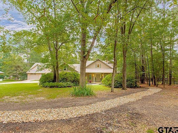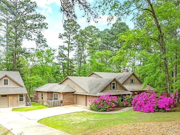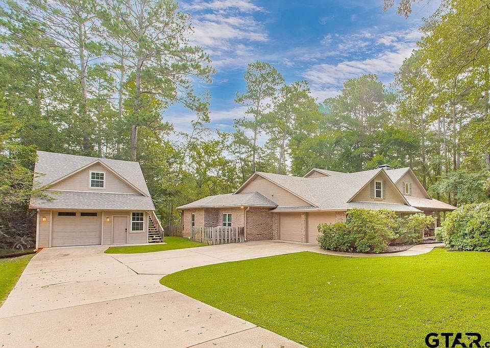 Beautifully maintained and updated, custom 4-bedroom, 2 ½ bath home with 2 car garage plus an additional workshop. The heated & cooled workshop with an upstairs bonus room is perfect for storage, hobbies, study area or a private retreat. Property sits on a serene 1+ acre lot with mature trees and azaleas. Offering approximately 2,862 SF of style and comfort, this home features a spacious living room with a cozy fireplace and floor-to-ceiling windows, along with a thoughtfully redesigned 2020 kitchen boasting custom cabinetry, a breakfast bar, and excellent storage. Work from home in the soundproof office with built-ins and its own fireplace. Primary suite with dual vanities, a walk-in shower, and a large closet plus an outdoor living is a delight with a covered front porch and a private patio off the primary suite. Beautiful outdoor space and yard extends past the fenced area. Additional upgrades include a whole-home generator, new French drain, tankless water heater, new windows (2020), fenced yard, walk-in attic, and wide concrete drive. Come tour this East Texas beauty today.