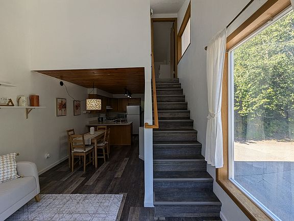 Furnished 2 Bed, 1.5 Bath, 3-story townhouse-style condo - First level has entry, bedroom, full bath, and hall closet. Second level with living room and mountain view, dining area, and kitchen with gas stove, side-by-side washer, and propane dryer. Third level - large bedroom with walk-in closet. One assigned parking space. Includes water/sewer, garbage, and propane. Tenant is responsible for electric and heat. Lease ends 4/15/25, linens not included, no smoking, and no pets.