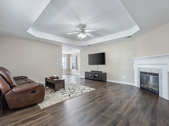Welcome to this beautiful 3-bedroom, 2-bath ranch-style home nestled in the charming neighborhood of Southern Pines. Located in Fort Walton Beach you are near local restaurants, groceries, shopping, and both Eglin & Hurlburt. As you approach, you'll appreciate the circle drive design of the neighborhood with no-thru traffic. The 2 2-car garage and driveway allow for storage and parking. The sizable fenced backyard with a covered patio is the perfect setting to enjoy sunsets and entertaining.Step inside to discover an inviting open living room with a split bedroom floor plan. The living room features a tray ceiling and a cozy fireplace. The kitchen boasts stainless steel appliances, including a refrigerator, built-in microwave, and glass top stove. A breakfast bar is a great place for entertaining or a place to grab a bite to eat.