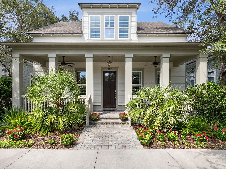 A beautiful, move-in ready gem in Amelia Park, a New Urbanism community with miles of sidewalks and tree lined streets. This 2019 Riverside home has over 2,200 sf of finished living space with many high-end finishes. Primary Bedroom and home office are on the first floor with two additional bedrooms and a sitting area on the second floor, which makes for a perfect visitor suite. The fully screened in back porch and breezeway offer a tranquil setting to relax and enjoy the elegant landscaped private backyard with a paver walkway. The living room / dining room / kitchen provide an open concept design which allows for seamless entertainment. The gourmet kitchen has stainless steel appliances, upgraded granite countertops and a polished marble backsplash. The beautiful soft close white cabinets and a glacier gray island provide ample counter space. The kitchen pantry has custom shelving by Closets by Design. White plantation shutters are throughout the home. Nothing has been left out in this stand-out home in Amelia Park.