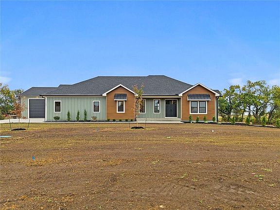 Beautiful custom home by Bryant Construction Group situated on 2.5 acres with custom upgrades throughout. This 5-bedroom, 4-bath property features a gourmet kitchen with walk-in pantry and custom cabinetry, a primary suite with custom closet, and an additional laundry closet in the basement. Zoned HVAC, heated garage, and upgraded insulation provide year-round comfort. Outdoor living includes a patio off the kitchen, a screened rear patio, fire pit, and sprinkler system. A detached 40x50 shop with 12- and 16-foot ceilings includes septic, water, propane, 200-amp panel, and bathroom stub-in—ideal for a guest suite, workshop, or hobby space. Property is agent owned.