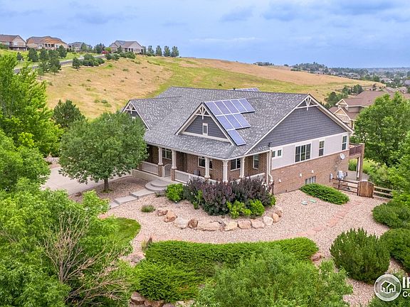 Set high on the rolling hills of Spring Mesa on nearly three quarters of an acre, 17891 W 77th Drive claims a rare vantage point where sweeping mountain horizons, the mirrored surface of Tucker Lake and the shimmer of the city skyline converge bringing the essence of Colorado's beauty right to your door. A wrap around front porch welcomes you in to the open ranch plan with 12 ft high vaulted ceilings and real wood floors spanning the main level. The renovated chef's kitchen unfolds as a showpiece of design and function with a 10 ft center island, modern white cabinetry, quartz counters, subway tile, stainless appliances, and an enviable pantry crafting an inspiring space that invites both culinary artistry and effortless connection. Defined by an ambient fireplace, the comfortable family room is framed by walls of windows where natural light and beautiful views filter in to the space and flows effortlessly onto the upper deck creating a seamless connection between indoor and outdoor living. A formal dining room and French-doored office bring conviviality and productivity. The main level hosts three bedrooms, including a voluminous and light filled primary suite with vaulted ceilings, panoramic views and a rejuvenating five-piece bath. The finished walkout basement is an entertainment playground with 2,500 square feet of living space including a media area with projector and screen, a billiards area complete with a pool table and wet bar and a cozy fireplace lounge. Two large bedrooms and a full bath offer flexibility for guests, a home gym or creative studio. A cascade of interconnected outdoor living spaces including a covered patio with tongue-and-groove ceiling and a circular firepit patio invite year-round enjoyment. Set on a .65-acre landscaped lot, there's room for kids to play, pets to roam, and gatherings to unfold under open skies. With a rare 4 car garage and inclusion in the top-ranked Ralston Valley High School district, this home truly checks every box.