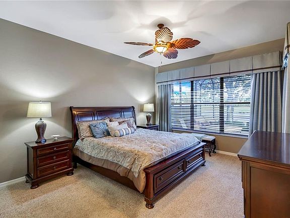 Sharp upgraded 3 BR/Den/loft! Rare 3 1/2 baths with 3 ensuites! Sleeps 8! Beautifully maintained! Stunning view upon entering thru the home to the pool pond and golf course. New roof 2022. Storm protected with impact windows and Kevlar transparent shutters. Exterior painted 2024 and custom Front doors 2015. 2016 Lennox AC serviced every 6 months. Eat in granite kitchen with wood cabinets by Cornerstone. Enjoy the gas heated pool with new 2024 NO_SEEUM re-screened lanai cage. Custom summer kitchen with gas grill, frig and built ins. Entire covered lanai area has custom built-ins and custom finishes. Master bath fully remodeled with frameless shower, double sinks. You will love the spacious walk in California Style customized closet. Garage features epoxy finished floor, custom storage cabinets and drawers on 2 walls with workbench area and hanging options for tools, brooms, mops and lawn implements! Located in the award-winning Miromar Lakes community, this home offers an unparalleled lifestyle. Miromar Lakes features a 700-acre freshwater lake with boating, fishing, and watersports, as well as three miles of white sandy beaches. Residents enjoy exclusive access to world-class amenities, including the Beach Clubhouse, fine and casual dining, a spa, a state-of-the-art fitness center, tennis courts, and a championship golf course. This prestigious community provides resort-style living with the comfort of home. Don’t miss your chance to own this breathtaking property and experience the luxurious lifestyle of Miromar Lakes. Schedule your private tour today!