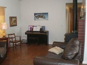 End of road privacy, covered front porch, home features tile entry, laminate flooring, open floorplan, cathedral ceilings, large master w/ his & her closets, dual vanities in both bathrooms, finished garage, Central A/C-Ht, woodstove & evap, rolling acreage and ready for a new owner