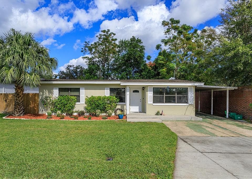 Charming Longwood home with a large peaceful backyard. Solid block construction. 4 Bedrooms and 2 baths with 2 carport spaces. Open concept with a lot of natural light making the living space feel much larger. Split floor plan. No carpet for easy maintenance. Laminate floor in living room and all bedrooms, and ceramic tiles in all others. Kitchen has granite counter top with matching back-splash, and stainless steel appliances. Enjoy families and friends gathering and chatting in the fenced-in private backyard. Excellent school districts. Friendly neighborhood. No HOA. Convenient to 427, 436, I-4, and Sunrail station as well as all kinds of shopping and restaurants, even walking distance to the Historic Longwood area.