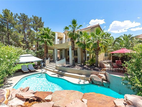 Best public school zoning in LV! Breathtaking home with its own private oasis! FULL BATH And Bedroom Downstairs! Located in beautiful Montecito Estates in Green Valley, this exceptional residence showcases stunning architecture & attention to detail. An elegant open staircase leads to a balcony that overlooks the main living area and connects the spacious upstairs bedrooms. The large, modern kitchen offers a sweeping 180 view of the lush backyard and is finished with sleek quartz countertops & premium fixtures. Perfect for entertaining, the kitchen flows seamlessly into a sophisticated dining room. Step outside to your own tropical retreat featuring a sparkling deep pool ideal for relaxing or hosting gatherings. The expansive primary suite includes a cozy loft/sitting area, and a luxurious en-suite. Expansive balcony can be accessed from the primary bedroom or loft area. All bedrooms are generously sized to ensure comfort and privacy.