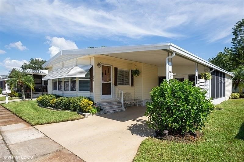 You will not be disappointed. Bring your fussiest Buyers to this lovely home. Ready for a new owner. Open floor plan. Great for entertaining. Living room and family room too! Beautiful laminate flooring in most rooms. Metal roof-over. Hot water heater and washer and dryer about 1 year old. Large vinyl enclosed Florida room with central a/c. The Florida room has decorative concrete floor and so does the carport. Great open patio area in rear of home too. Being sold completely furnished. (No value was added for the furniture) Gull-Aire Village is a 55+ community that offers active clubhouse, library, pool table, shuffleboard, and Bocce ball court. Large heated pool, spa and is golf cart friendly. HOA is $40.00 per month. One pet- up to 35lbs. You own your own land. You can walk to AMC Theatres, Beall's, Marshall's, Earth Fare, Pet Smart and Dollar Store. Restaurants within walking distance include Panera Bread, Starbucks, Ruby Tuesday's, Craft House and Eve's Family Restaurant. Just minutes to Westfield Mall, Super Walmart, Publix and Countryside Hospital. Easy commute to Tampa International Airport. About 20 minutes to the beautiful beaches of Honeymoon Island and Caladesi State Parks. Room sizes are approximate and should be verified by Buyer. Must see to appreciate.