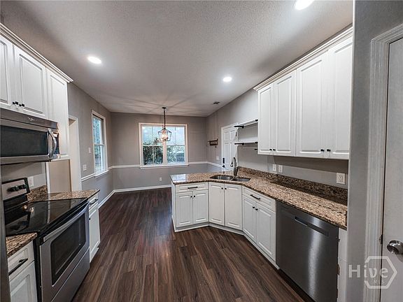 Large fenced yardWell-appointed primary suiteMature landscaping and treesStainless steel appliancesNewer carpetUpgraded laminate flooringEat-in kitchen