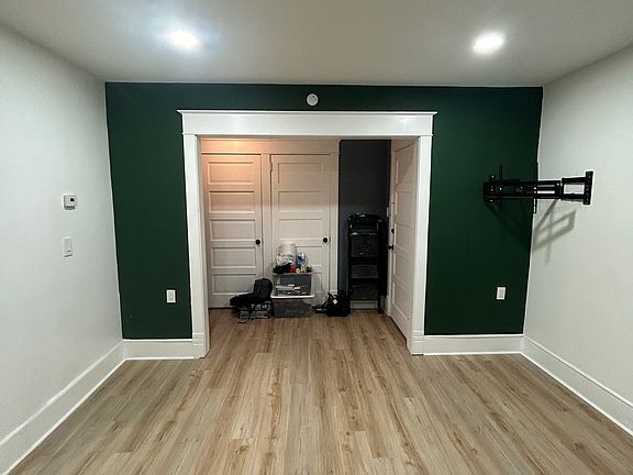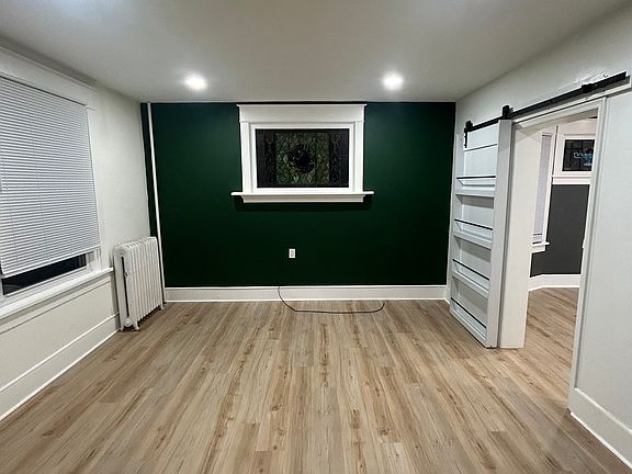 Newly renovated first floor apartment. Brick walls in the kitchen and bedroom. High ceilings in the kitchen. Warm and cold lighting in kitchen and bedroom. 1 full bath off of bedroom and 1/2 bath off the kitchen. Small deck outside. Shared fenced in backyard. Wash and dryer hook up in basement.