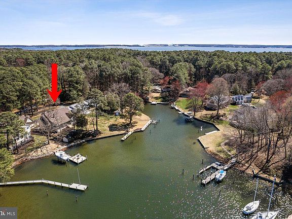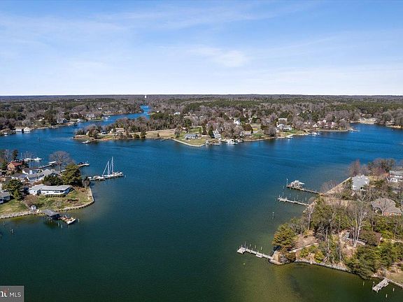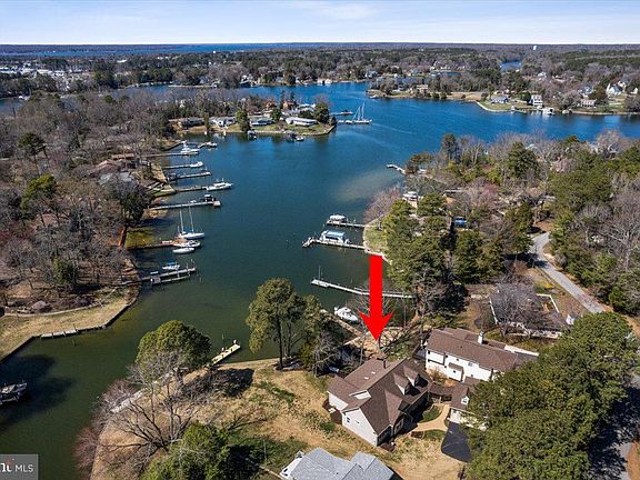 DRUM POINT waterfront residence with two docks and a beautiful cove view is ready for the next owners! The 3BR/3.5BA main house with single level living design is enhanced by beautiful hardwood floors, and includes a dramatic central great room with propane fireplace, large dining room (or maybe a future den). The kitchen-breakfast room space is outfitted with propane downdraft cooking, cabinetry with shelving and display lighting, a perfect space for the breakfast table and hutch. The waterfront primary suite with attached private bath includes the laundry service area, also has direct access to a gorgeous sunroom. This sunroom/Florida room is really a special part of the home...it's where you might spend most of your time, has a separate wall unit heat pump. Two additional bedrooms in the main house are served by a second full bath in the hall, and the extra half bath is located in the breezeway transit area, convenient for working in the yard or garage. The semi-detached garage with 1BR/1BA apartment is connected to the home by a breezeway, and served by a wall unit heat pump. This apartment above the garage is perfect for longer guest visits, family overflow, office or studio. Enjoy the Chesapeake lifestyle, take the boat to Solomons for dinner or cruise to your heart's content. Play a game of croquet, enjoy the appearance and feel of a lush lawn. This property is move-in ready, visit soon!