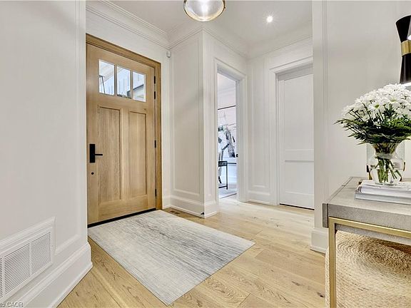 Nestled just steps from the vibrant core of downtown Oakville, this custom-designed farmhouse redefines luxury living. Boasting 4+1 bedrooms and 5bathrooms, this remarkable residence seamlessly integrates functionality with upscale features. As you enter, you're greeted by a bright and airy ambiance that flows through spacious principal rooms, a main floor office, and an eat-in kitchen with a separate dining area. The custom-designed kitchen opens to the living space and back porch, making it perfect for entertaining. Meticulous attention to detail is evident throughout, from the elegant panelled walls and coffered ceilings to the radiant heated floors that provide warmth year-round, complemented by two indoor fireplaces. Additional highlights include built-in speakers, camera and security system, designer light fixtures, high-end Miele appliances, and a garage featuring epoxy floors and slat walls. The private exterior showcases a granite stone driveway and address wall, an inground ozone pool with an automatic safety cover, an outdoor patio with an additional fireplace, a shed, and generous green space. With five skylights and oversized windows illuminating the interior, this home is truly exceptional. Situated in a highly sought-after school district, it perfectly combines luxury, comfort, and convenience, making it an outstanding choice!