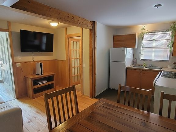 Private deckAdjoining kitchenWide sliding doorClassic clawfoot tubNatural texturesOriginal detailsCollected feel