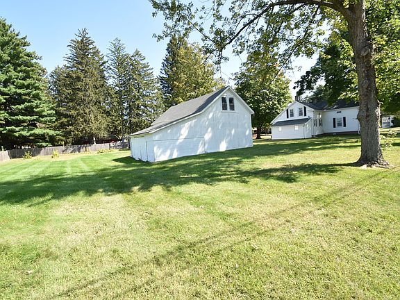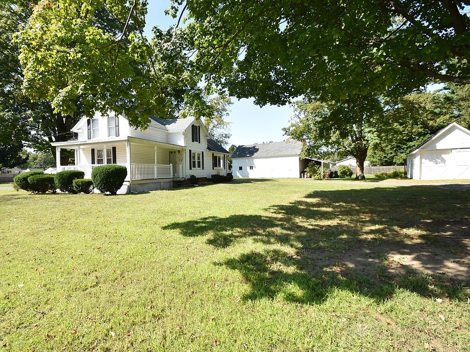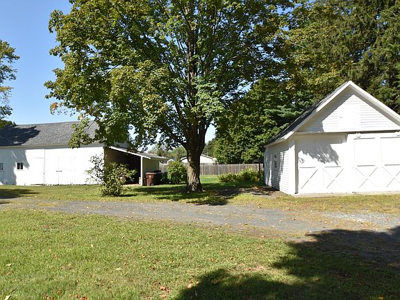 The charm of the 1800's and in excellent condition, this 7 room home is hard to find, with a desirable layout, featuring first floor primary bedroom. The dining room leads to the large spacious eat-in kitchen with pellet stove. The living room is drenched in light and perfectly accented with original french doors. The spacious barn with 2nd floor, and the oversized 2-car garage provide versatile storage options and ample parking. The property has frontage on Harvest Rd and Elm St. Newer boiler for peace of mind.