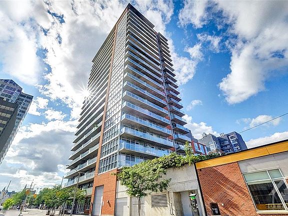 Welcome to unit #710 at 179 George. 1 bed + DEN (724 sq ft including balcony) converted to oversized 1 bed, FLOOR-TO-CEILING windows throughout = tons of nat light! Featuring an open-concept kitchen that flows perfectly into the formal dining space, living rm and a perfect nook for a home office! Kitchen has been tastefully updated with gorgeous cabinetry, upgraded countertops, quality backsplash and moveable island. Unit comes equipped with sleek upgraded lighting fixtures + in unit laundry. Walk into your bright/spacious bedroom where you will be treated with floor to ceiling windows, extra closet space and white gloss wardrobe to keep you organized. 62 sq ft balcony perfect for a morning coffee or drinks with your friends! Full bath with upgraded vanity + countertop and a luxurious waterfall shower head! Situated in one of Ottawa's HOTTEST areas, development coming up in the surrounding at a much higher price per sq ft, future appreciation! FEES INCLUDE: AIR CON, HEAT, HYDRO + MORE!