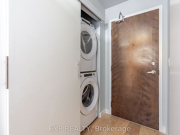 Discover The East Market, one of Ottawa's top spots for hard-loft condos! This spacious west-facing 2-bedroom unit features exposed concrete ceilings, hardwood floors, and a bright open living/dining area with a balcony overlooking the Market and Parliament. Floor-to-ceiling windows bring in tons of natural light. The condo has been updated with all new appliances, new kitchen counters, sink and faucet, a built-in microwave, stacked washer/dryer, and a new vanity and toilet. Carpet was removed and replaced with new flooring, plus both bedrooms have new sconces. There's also new ceiling lighting and updated wiring in the living room for easy TV setup. The primary bedroom includes a Jack-and-Jill ensuite and a walk-in closet. The second bedroom is versatile, perfect for an office, studio, guest room, or den, and comes with plenty of closet space. One underground parking spot is included. Building amenities include a full gym, party room with terrace and BBQs, games room, and lots of visitor parking. Condo fees cover all utilities.