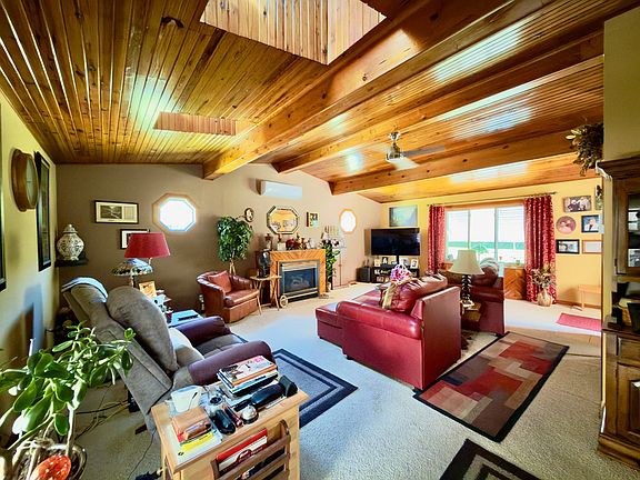 Adorable, and move-in ready vinyl sided home. If you are looking for a home that offers a one floor plan with a bonus room on the upper level and a gorgeous outdoor living space - then Jackpot! This vinyl sided home offers on the main level: A spacious living room accented with a cathedral ceiling, cozy gas fireplace, and French doors leading to the outside patio area, an eat-in kitchen that is complimented with appliances, two bedrooms, one remodeled, gorgeous full bath, and a laundry room. There is a third bedroom on the upper living area of the home. The outdoor living space offers many areas of enjoyment. The fabulous outside area contains almost an acre (.92) of usable space which contains a gorgeous covered patio, three outbuildings, and a yard that can be recreational space or a garden area. This home is very special, and many upgrades are included. Gas forced air with central air, triple pane windows, and roof that is approximately 6 years old. Well Maintained !!