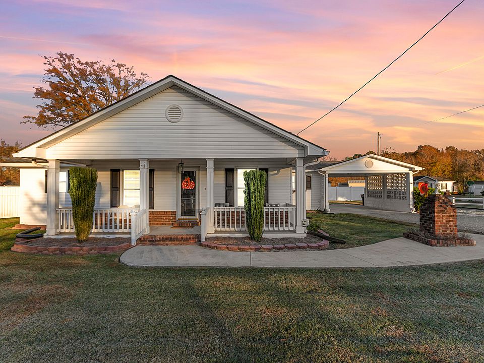 Welcome to this inviting 3-bedroom, 2-bathroom home that beautifully blends timeless character with thoughtful modern upgrades. Enjoy peace of mind with a brand-new roof installed in 2024 and a reliable HVAC system that's only 4 years old. Recent improvements in 2023 include fresh interior paint, stylish new light fixtures, and durable LVP flooring throughout. The kitchen shines with refinished cabinets, a new downdraft, updated backsplash, and sleek countertops—perfect for both everyday living and entertaining. Step outside to a covered carport, a spacious backyard featuring a patio and covered awning, or relax on the welcoming front porch. Enjoy the comfort and quiet of living in a small town, yet only minutes from I-95 and I-40. This home offers comfort, style, and convenience—ready for you to move in and make it your own!